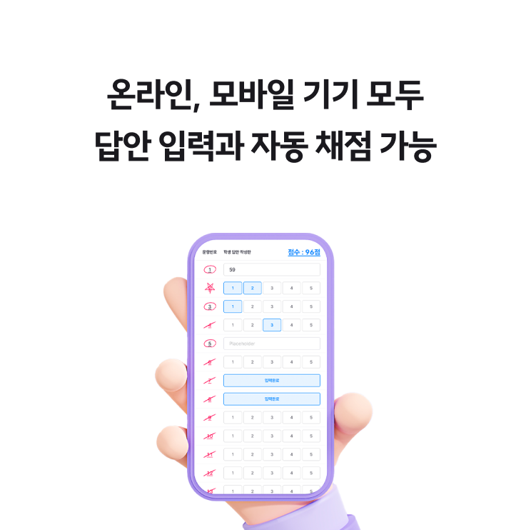 학습 효과 향상, 교사 업무 부담 감소. 채점 결과를 입력해야 맞춤학습, 오답ᆞ유형 클리닉, 학습 분석과 관리가 가능합니다.