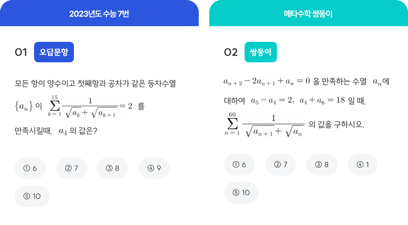 쌍둥이, 유사유형 문제 최고 매칭률. 모르는 부분을 알아가는 것이 곧 학습이므로 오답클리닉은 필수입니다.