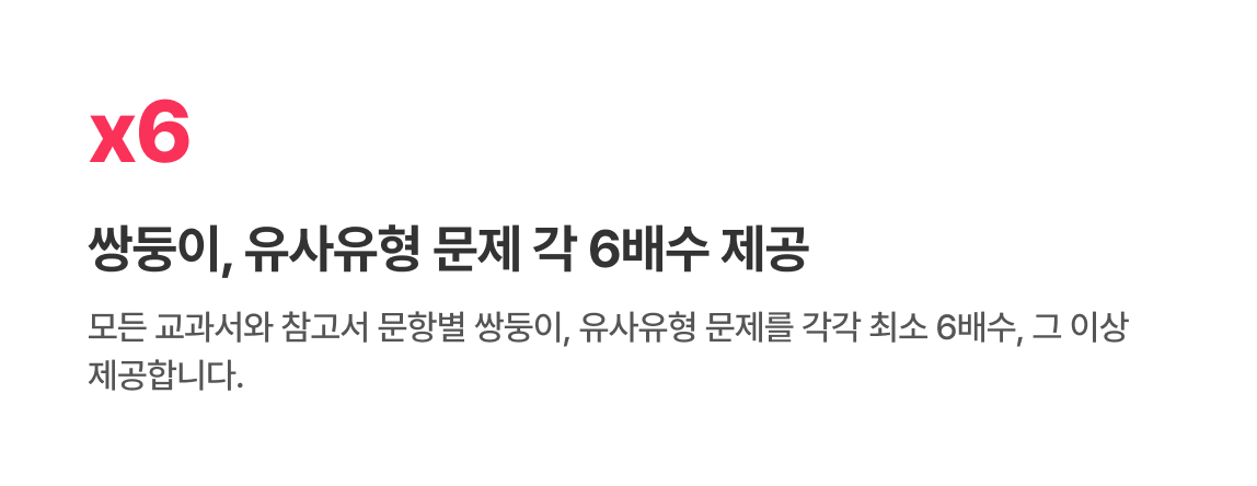 95% 이상의 정확성! 교과서& 참고서 매칭 쌍둥이·유사유형 문제 제공!